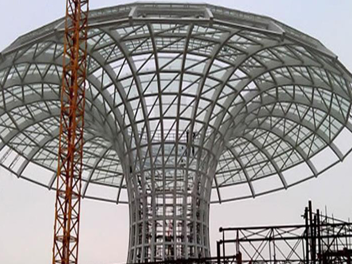 二、球形网架结构因其结构新颖,受力合理,自重轻、用钢量低等优点。如大型体育场馆球形兴化螺栓球网架、公共场馆球形网架、电厂兴化螺栓球网架、水泥工业球形网架、仓储物流球形网架、兴化干煤棚工业球形网架、兴化收费站兴化加油站球形网架、展览中心、影剧院、商场、航站楼、候车厅、工厂兴化车间、仓库、电视塔等球形螺栓球节点网架。国内球形网架结构主要分为:兴化焊接球节点网架及螺栓球节点网架两种。螺栓球节点网架其构件工厂内加工量较大,现场安装便捷,适用于现场工期紧,兴化施工条件、用电量受制约,网架形状复杂、兴化杆件定位困难的异形结构。螺栓球节点球形网架系统基本由兴化杆件、螺栓球、支撑支座等组成。按照节点形式可分为交叉兴化桁架体系、四角锥体系、三角锥体系等。支撑方式多为固定支座支撑。对于大面积、大跨度及有特殊受力或伸缩要求的网架结构可采用橡胶支座、滑移支座、球铰支座等支撑形式,以满足结构自身的受力稳定、均衡,便于内力释放等设计要求。
